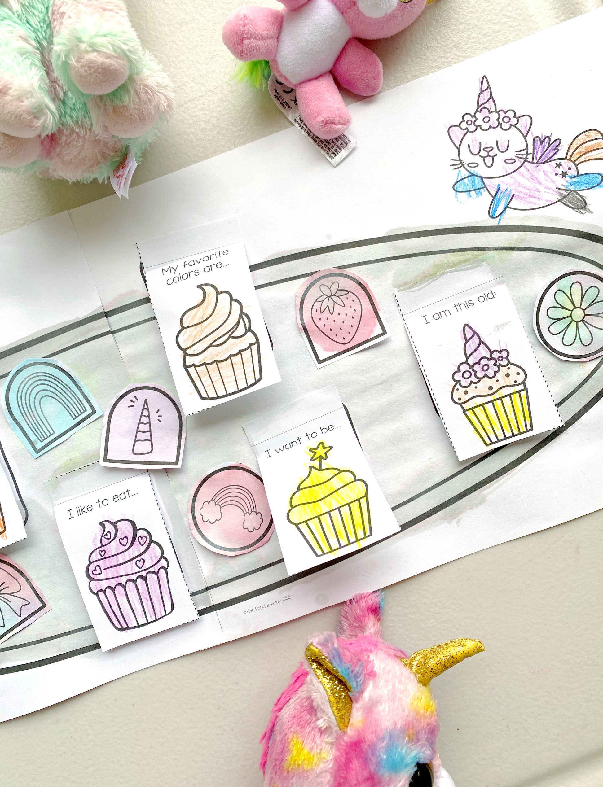 Is your little one a fan of unicorn kitties and cupcakes? Then they'll love this "lift the flap" style survey craft! No color ink needed!