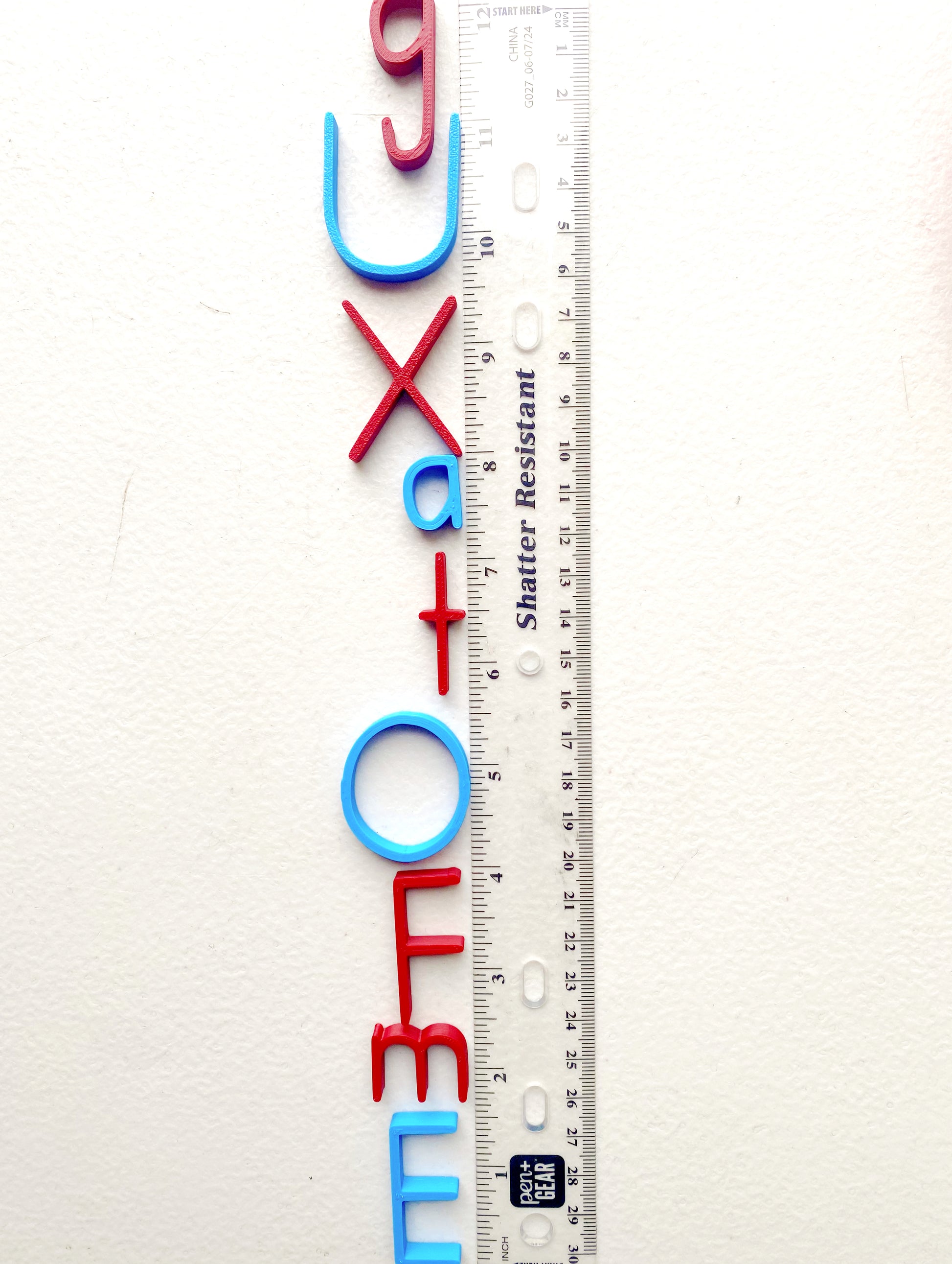 These 3D printed letters are inspired by the Handwriting Without Tears Font and come in traditional 26 letter alphabets (upper and lower case) as well as “word builder” sets (with an extra set of vowels as well as an extra of the commonly doubled letters b, d, f, g, l, m, n, p, r, s, t, and z).